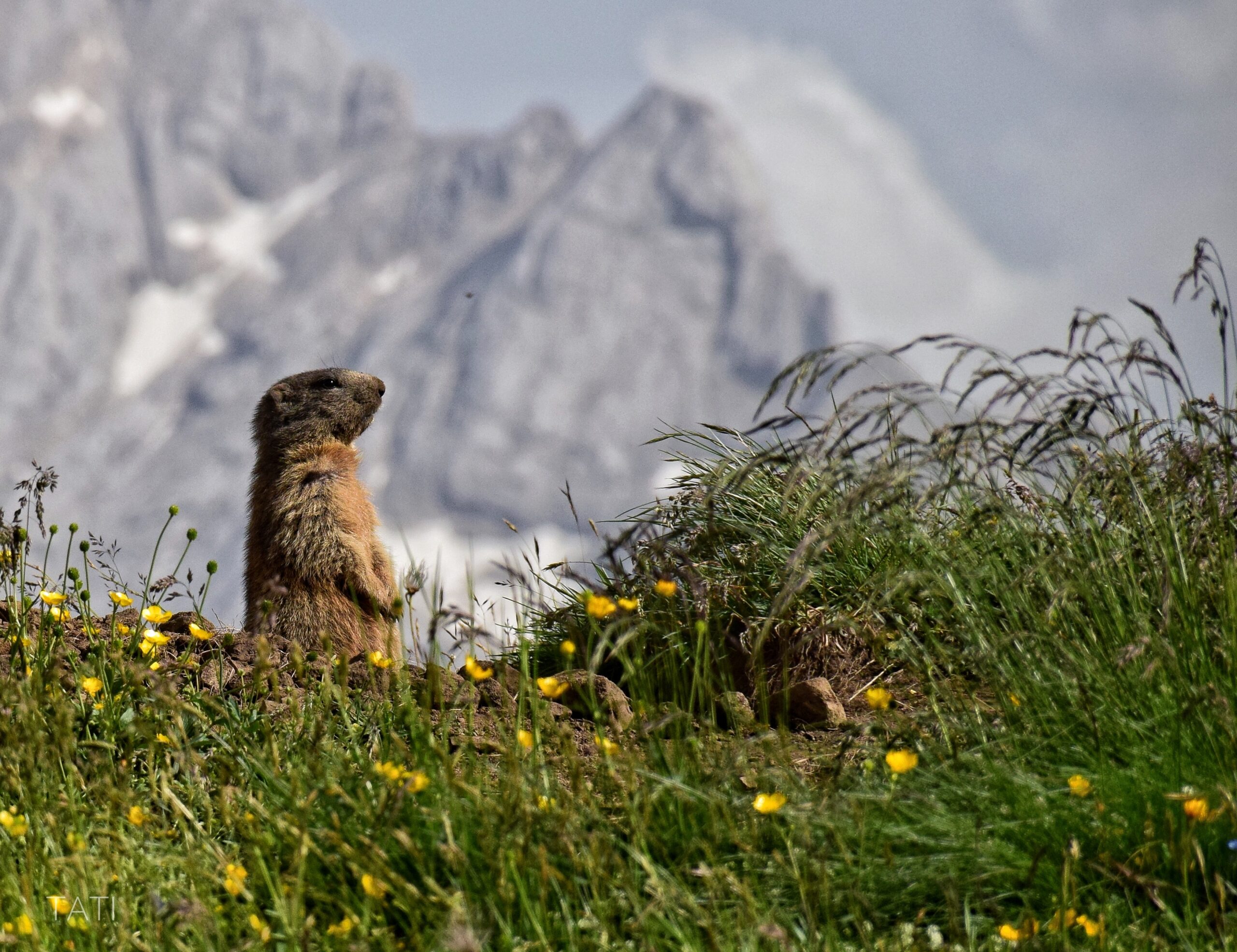 A five minute drive away from the parking lot at Sassolungo we saw a valley with little holes in the ground (right across Hotel Mariaflora). Within a couple of minutes we spotted two fluffy Marmots wandering around, when they realized we were watching they went straight to their underground home. We decided to get closer and wait patiently for them to make an appearance and guess what, they did! Cute, fluffy and funny, that’s the only way I can describe them.