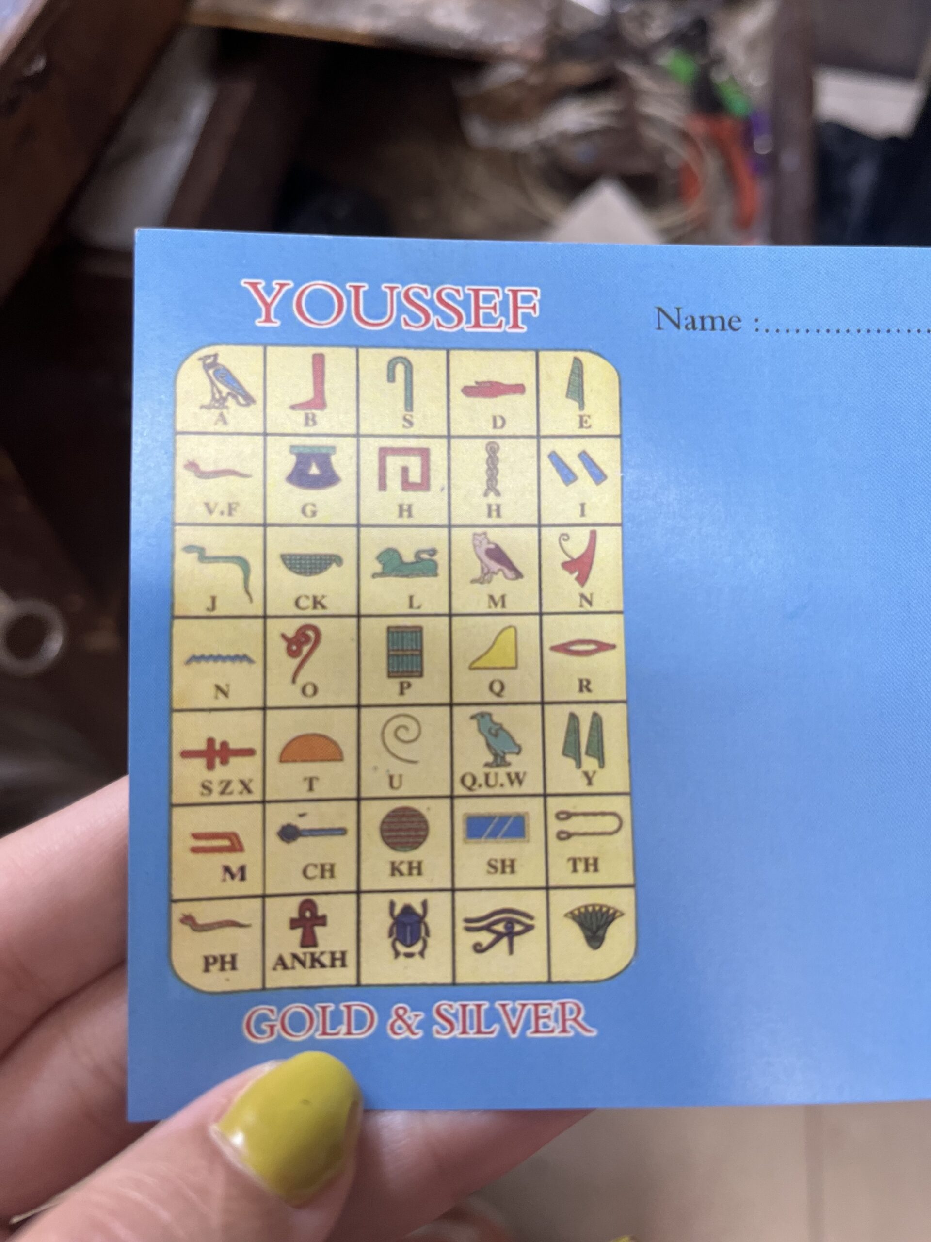 5. Local crafts store – We requested this to get our own tailored Egyptian Cartouche (read more details below)