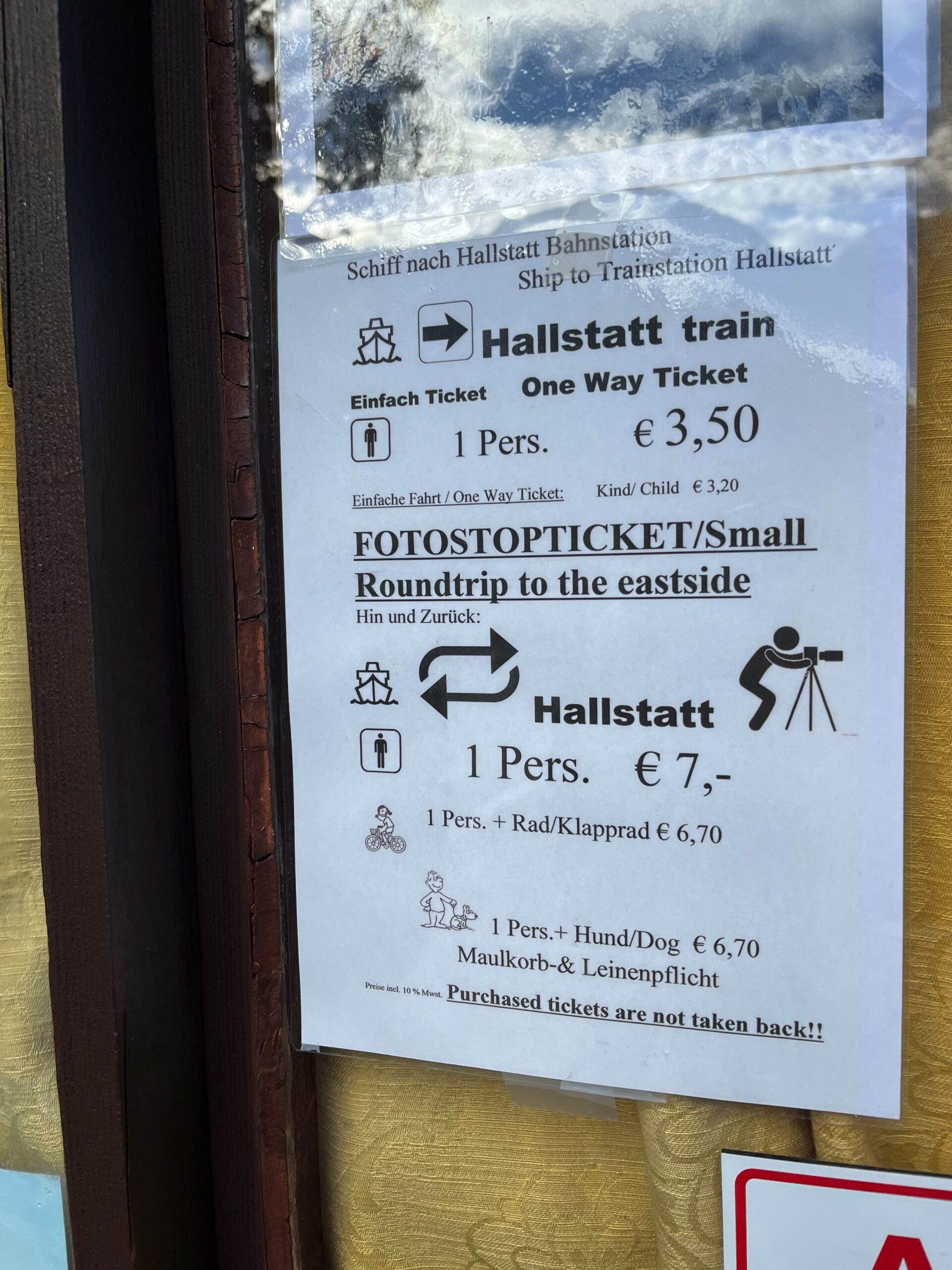 As soon as you get to the Hallstatt train station you will need to take the ferry to cross the lake and get to the city. A return ticket costs €7 (if you are there just for the day you can store your luggage as soon as you get off from the ferry for €3).