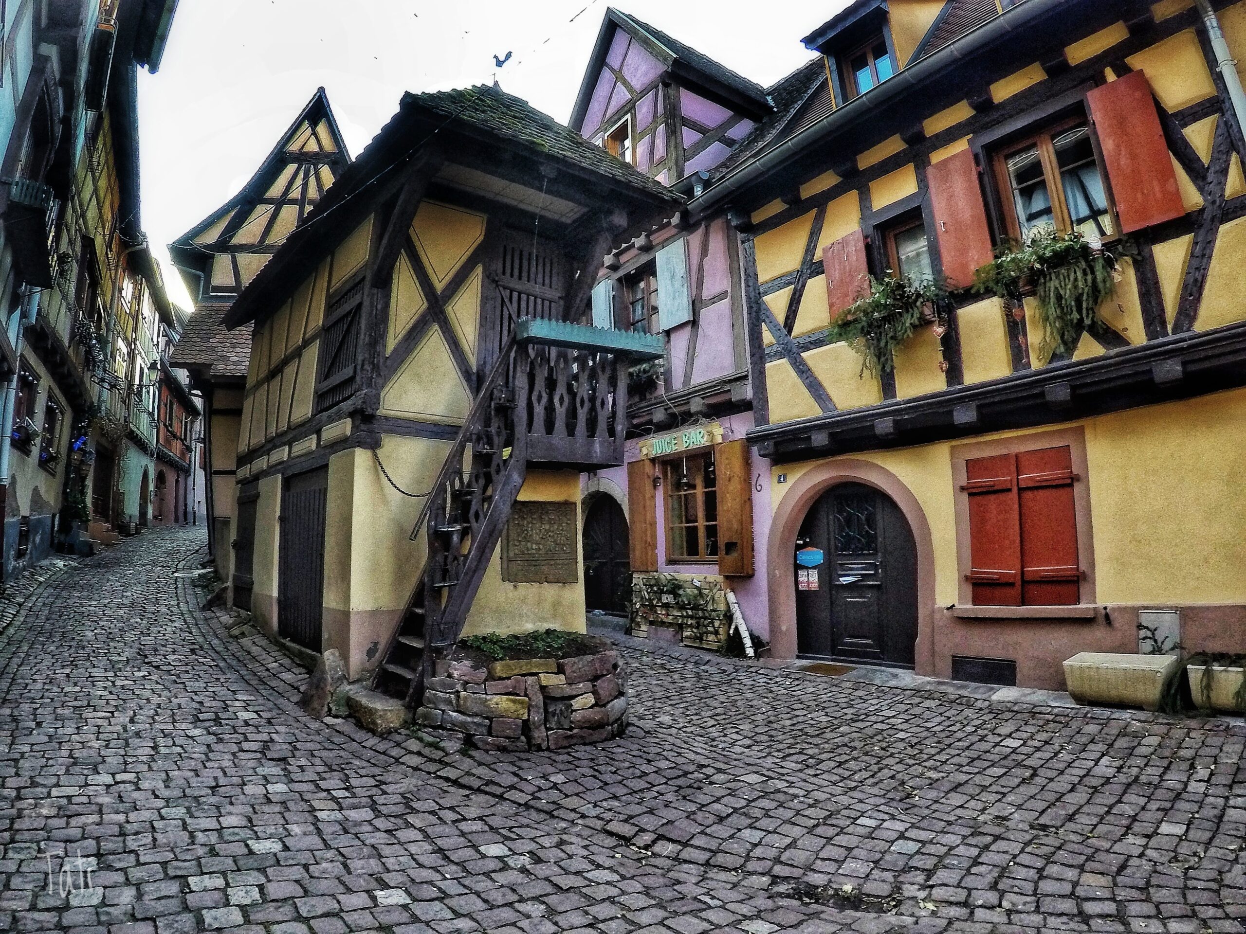 Despite the really cold weather we decided to walk there. It was a 2 hour long pace walk that gave us the opportunity to take lot’s of pictures and walk through the vine yards. I would suggest to go the in Autumn if you want to see the vine yards, the town will be a bit busier and you will also get a chance to visit local shops, eat and taste the local wine. By the time we got there the town was empty, mostly because we were there off-season but we didn’t mind at all. We started walking around the centre of the town… and there it was the street Eguisheim is mostly known for. Trust me in real life is much more beautiful.  Just grab a map or use your phone and get yourself lost in the narrow streets of the old centre of Eguisheim.
