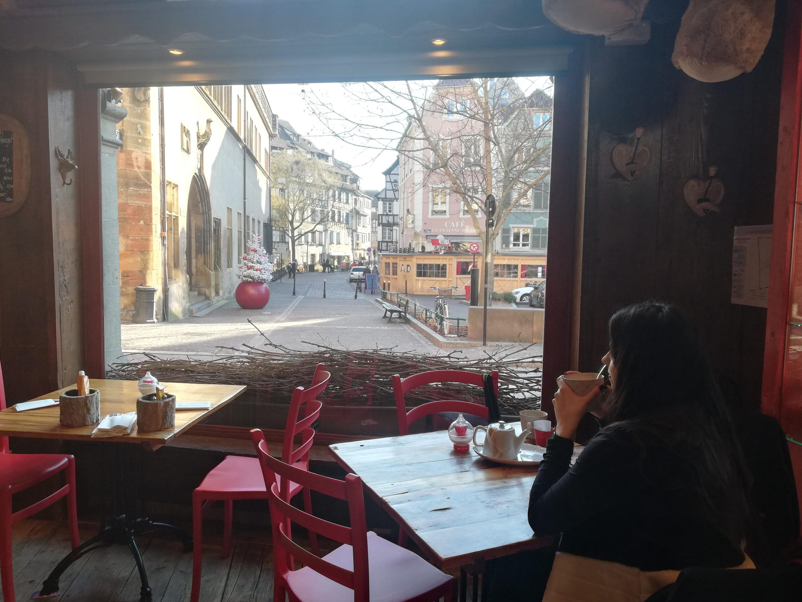 We jumped into a train and in just 30 minutes we were in Colmar. It was absolutely freezing for us so we had to make a short stop to a local store and buy an additional sweater to wear. But it was worth it, Colmar was as beautiful as Strasbourg. Amazing narrow little streets, wooden houses, fairy-tale vibe. We walked into a local coffee shop and enjoyed our coffee and tea gazing at the beautiful view.